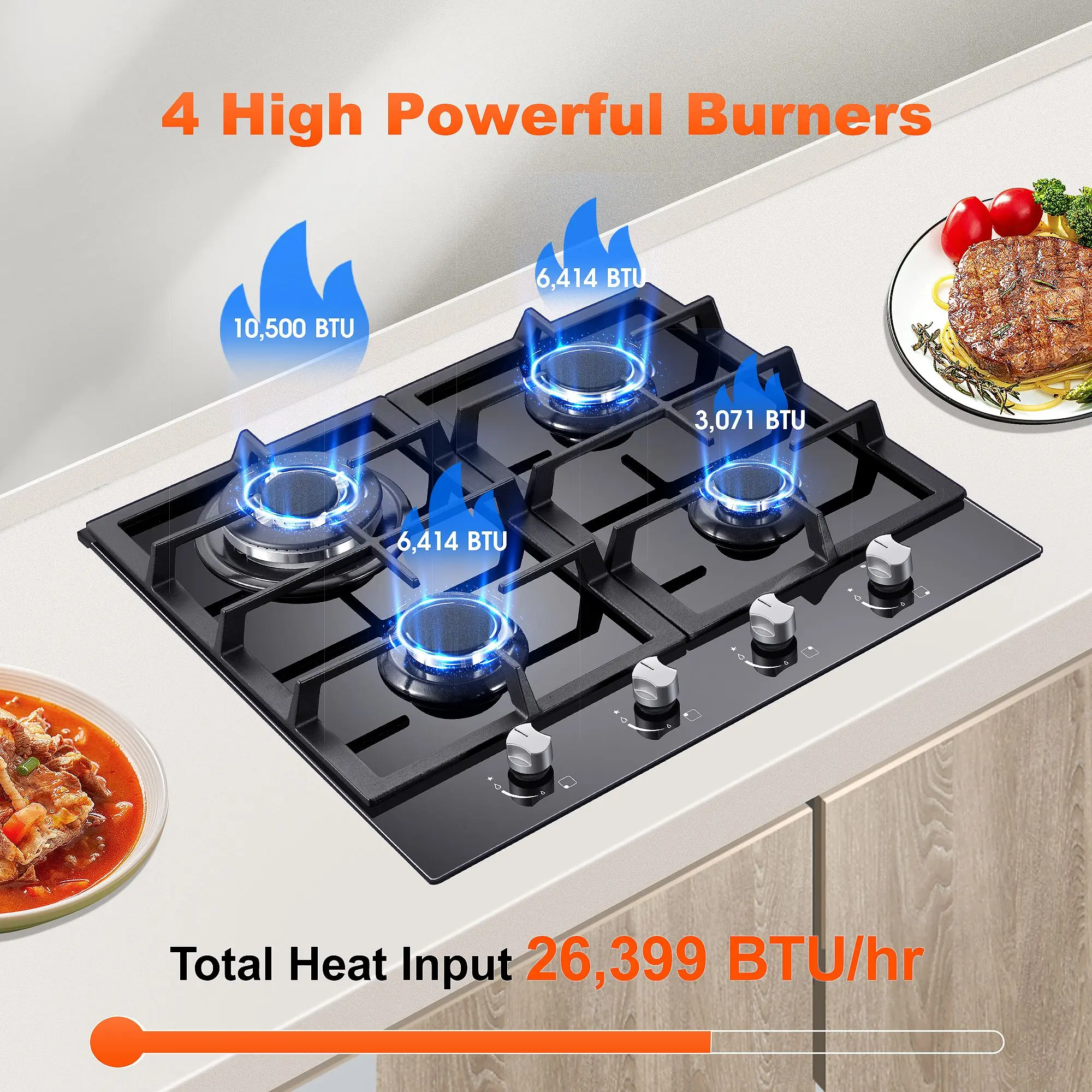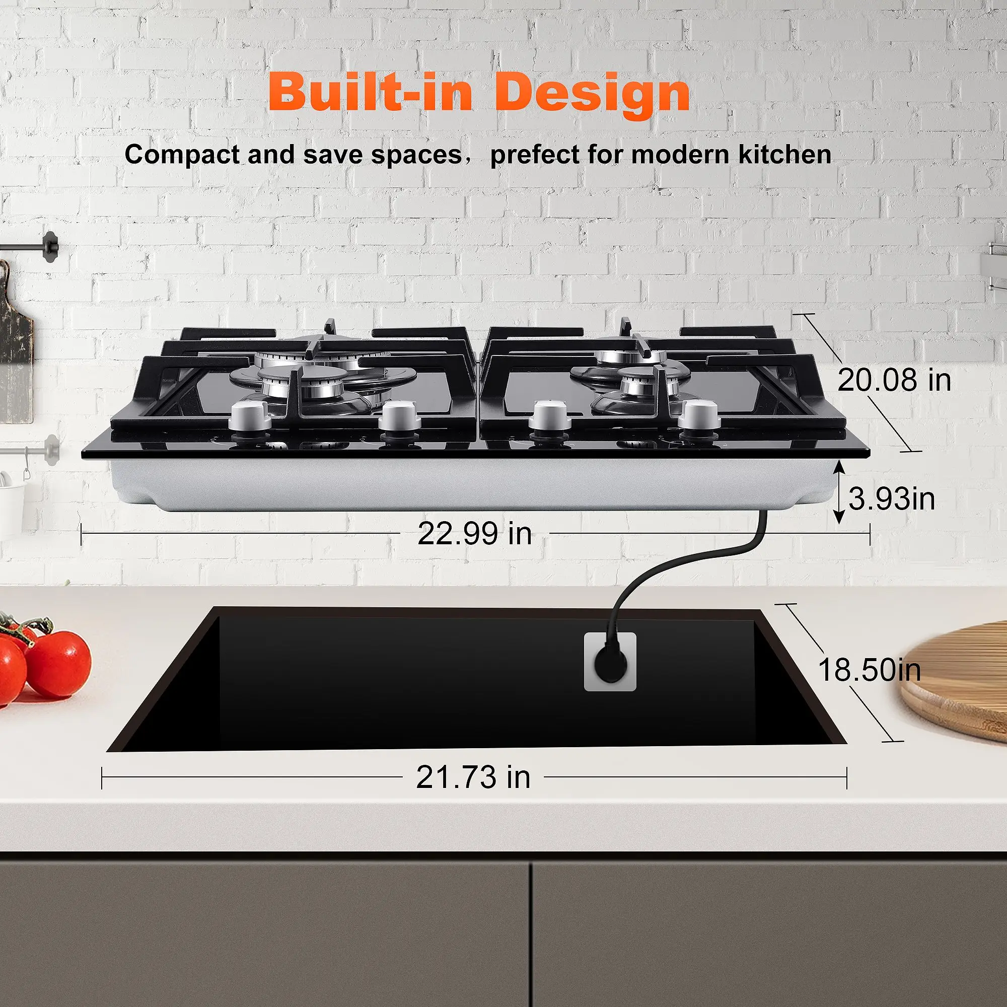 Built-in Gas Cooktop 24 Inch: Product size: 22.99" W x 20.08" L x 3.93"H, Cut out size: 21.73" Wx 18.5" L.